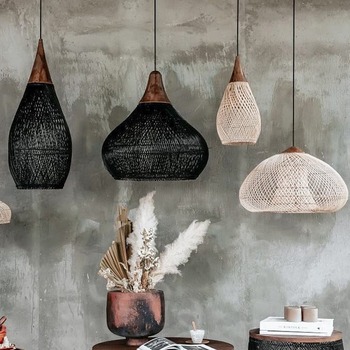 JYLIGHTING Japanese Wabi Sabi Modern Woven Rattan Pendant Lamp Wooden Creative Design Rattan Bamboo Chandelier