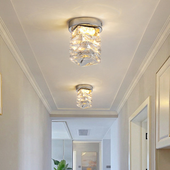 JYLIGHTING Contemporary Single - Light Crystal Ceiling Lamp Cylinder Design Silver Base Perfect for Hallway Bedroom