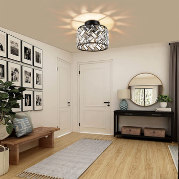 Jylighting pha lê hiện đại tuôn ra gắn trần đèn kim loại màu đen khung trang trí LED chiếu sáng cho phòng ngủ phòng khách